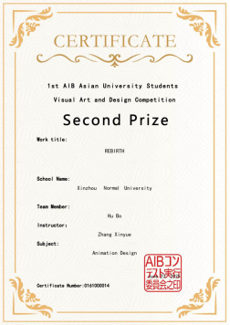 在1st AIB亚洲大学生视觉艺术设计竞赛中,鲁迅美术学院、山西大学、西北大学等亚洲多国高校踊跃参与,我校作品《REBIRTH》(作者:计本2306班胡博)在激烈角逐中脱颖而出,荣获动画设计类二等奖。该奖项的取得,是对我校学生专业水平的有力认可,也充分彰显了我校学生在国际赛事中的竞争力。